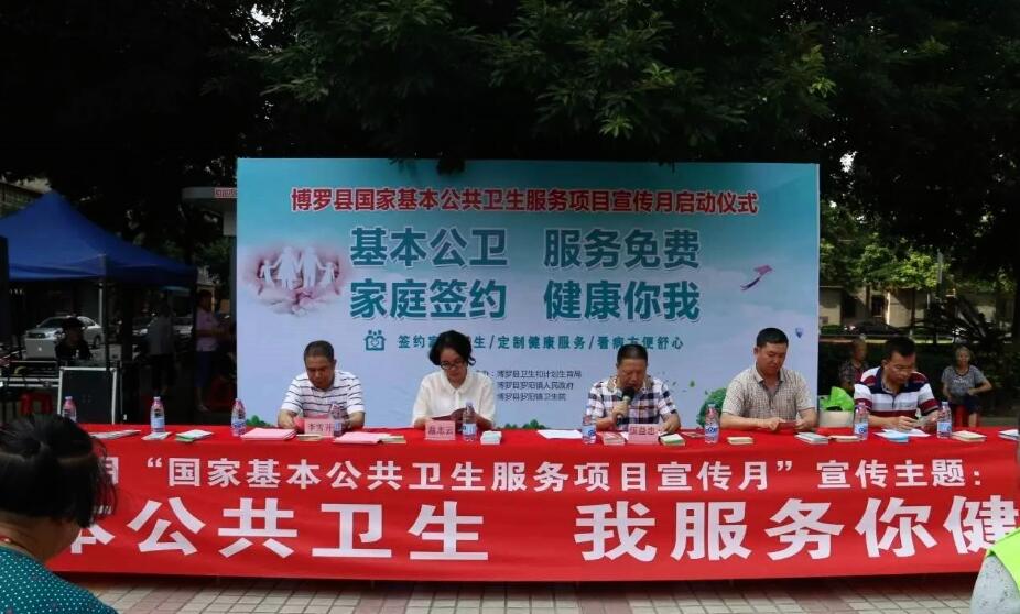 7月26日上午,以“基本公共衛生,我服務你健康”為主題的博羅縣2017年國家基本公共衛生服務項目宣傳月啟動儀式在縣城文化廣場隆重舉行。宣傳活動由博羅縣衛生和計劃生育局主辦,羅陽鎮政府協辦,羅陽鎮衛生院承辦。縣衛生和計劃生育局副局長伍益忠,羅陽鎮人民政府副鎮長溫志云,縣疾病預防控制中心副主任鄧壽平,羅陽鎮衛生院院長李雪開出席活動。縣直各公共衛生機構工作人員和專家、羅陽鎮衛生院公衛服務隊和村衛生站負責人及群眾共200余人。
