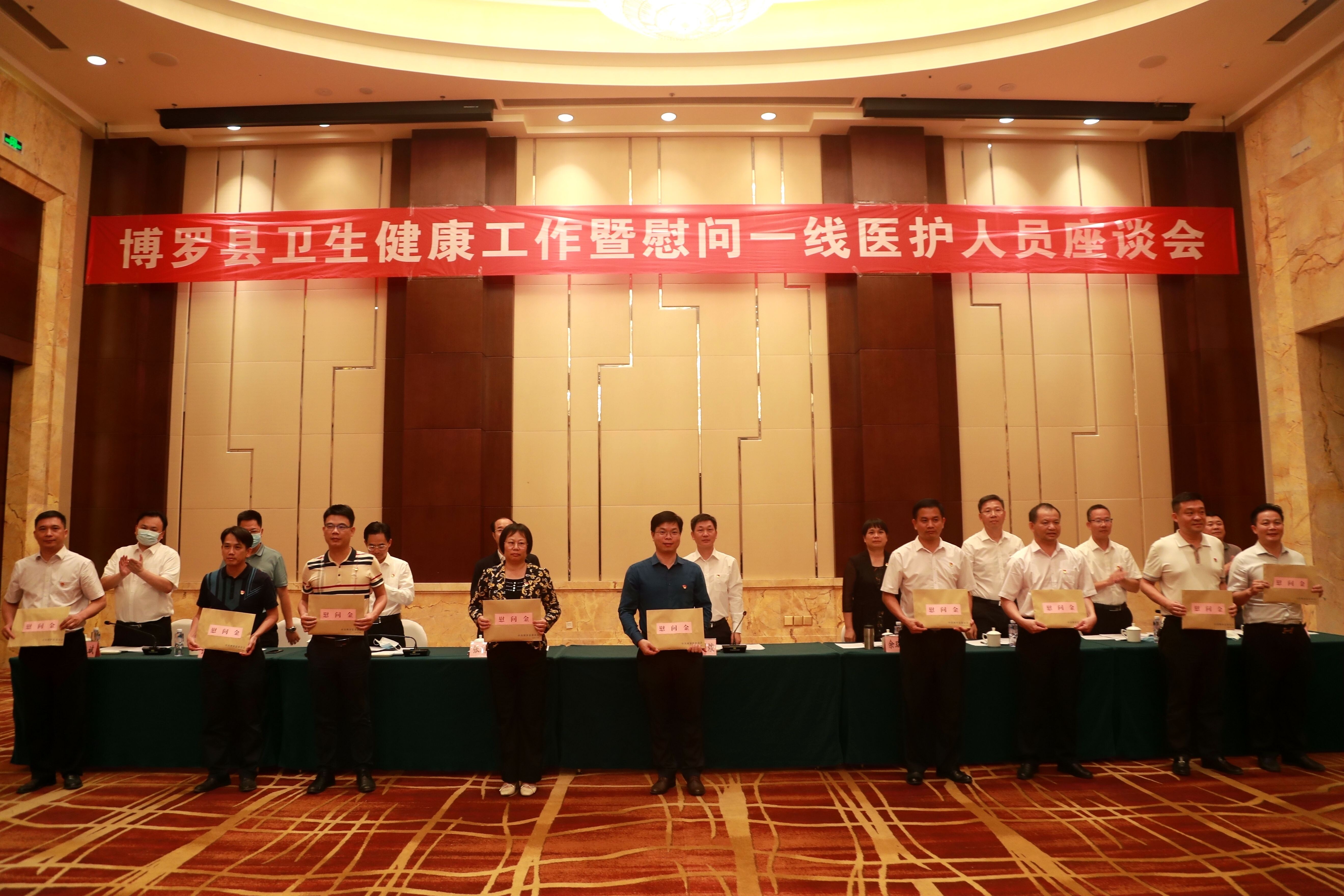 10月14日下午,我縣召開2020年博羅縣衛生健康工作暨慰問一線醫護人員座談會,縣委書記陳國煌,縣人大常委會主任余瑞芳,縣政協主席張利生等縣四套班子領導、縣委編辦、縣財政局、縣人力資源社會保障局主要負責人、縣衛生健康局全體班子及全縣一線醫護代表參加座談會。會議由縣委常委、常務副縣長黃松茂主持。