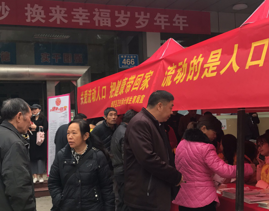 活動現場,在寒冷的天氣里,計生辦工作人員熱情為歸家的旅客送上冒著熱氣的姜茶,羅陽衛生院的醫生忙碌的為過往的旅客測量血壓,提供健康知識咨詢服務,并為旅客發放宣傳健康知識的小冊子。