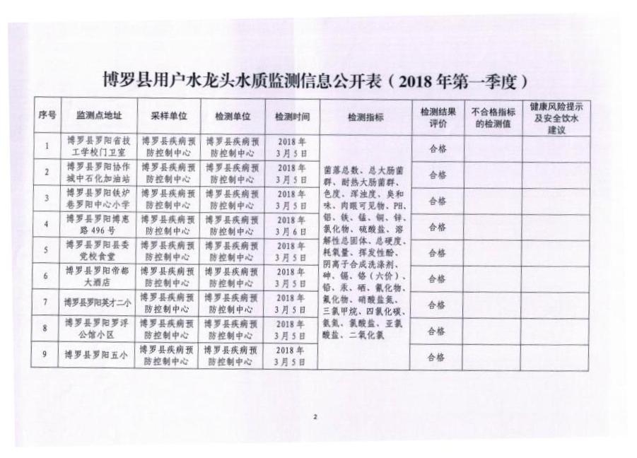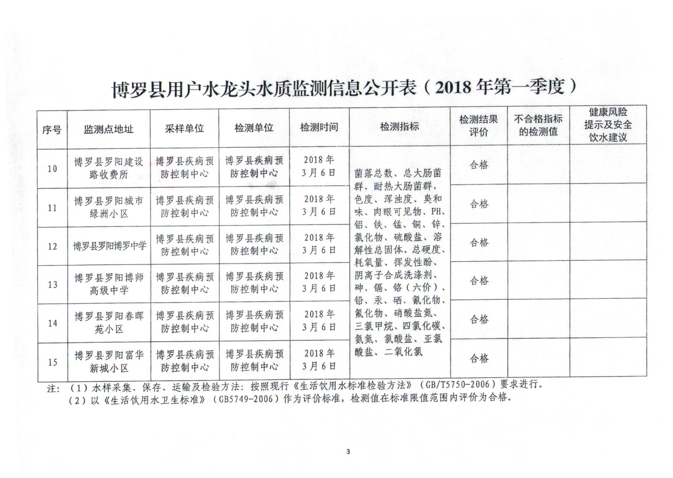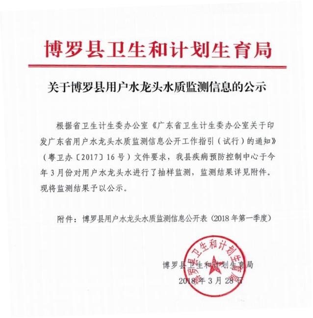 關(guān)于博羅縣用戶水龍頭水質(zhì)監(jiān)測信息的公示