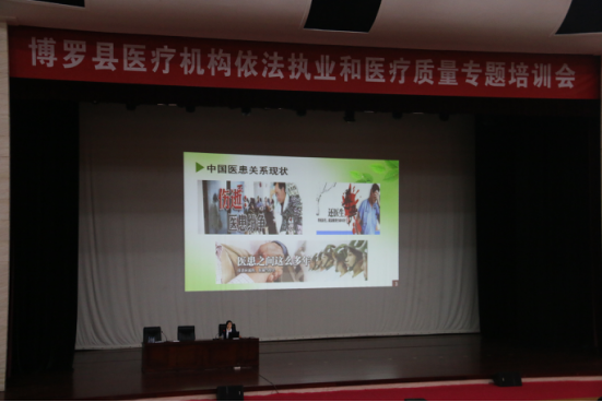 為進一步依法規(guī)范醫(yī)療服務(wù)行為,促進醫(yī)療行業(yè)依法健康發(fā)展,我局于4月25日在文化中心影劇院舉辦博羅縣醫(yī)療機構(gòu)依法執(zhí)業(yè)和醫(yī)療質(zhì)量大型專題培訓會。縣轄區(qū)內(nèi)650多家醫(yī)療機構(gòu)的負責人及相關(guān)工作人員共760多人參加培訓。