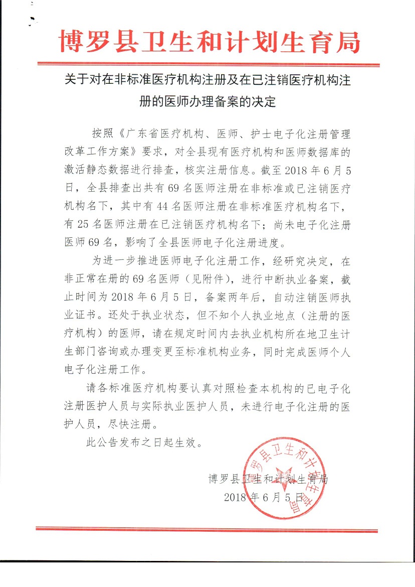 關于對在非標準醫療機構注冊及在已注銷醫療機構注冊的醫師辦理備案的決定