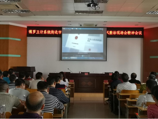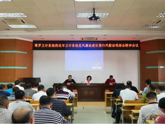 2018年12月6日下午,博羅縣衛計系統召開傳達貫徹全市衛生計生系統黨風廉政建設暨行風整治現場推進會精神會議,縣直各醫療衛生單位,各鄉鎮衛生院(街道社區衛生服務中心)主要領導及分管領導、局機關領導班子和各股室負責人共80多人參加了會議。會議由局黨組成員張武同志主持。