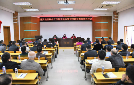 2019年1月16日,博羅縣醫聯體工作推進會議暨對口幫扶醫院簽約儀式在縣衛生和計劃生育局四樓會議室舉行。縣衛計局黨組書記、局長王筱紅,縣衛計局黨組成員、副局長崔愛民、伍益忠出席了會議,縣直醫療衛生單位、各鄉鎮衛生院(社區衛生服務中心)班子成員及業務相關負責人共100余人參加了會議。