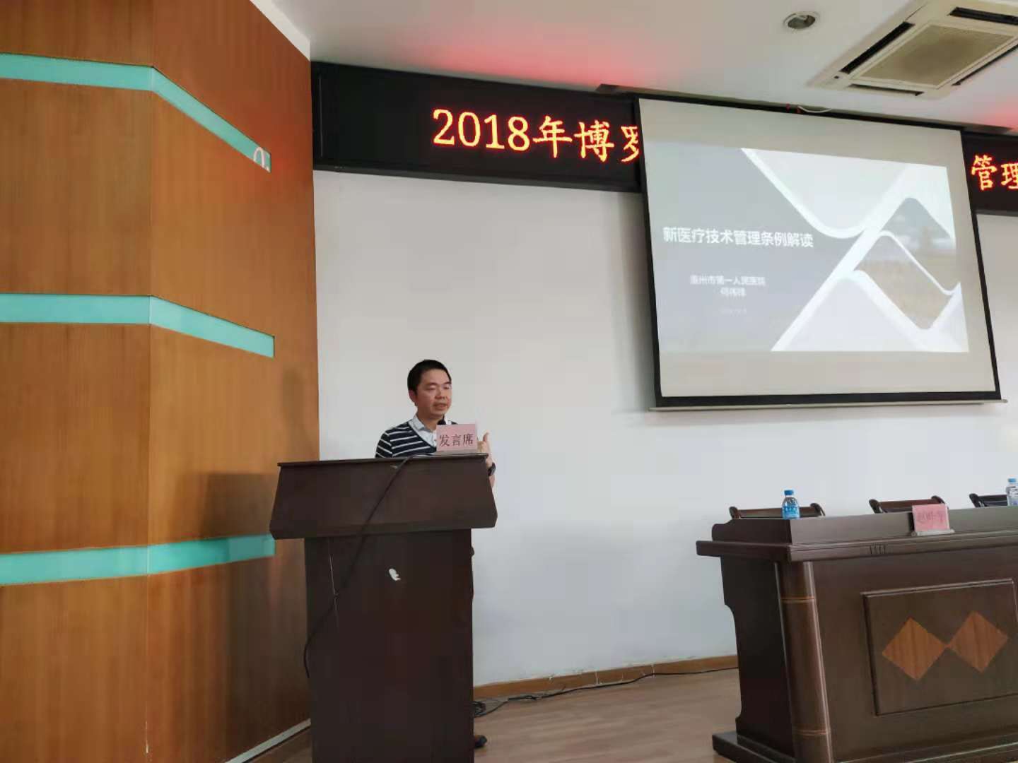 為貫徹落實2018年11月1日正式實施的新《醫(yī)療技術臨床應用管理辦法》,加強全縣醫(yī)療機構醫(yī)療技術臨床應用管理,我局于11月23日下午在局四樓會議室舉行了2018年博羅縣醫(yī)療技術管理培訓班,我縣29個醫(yī)療衛(wèi)生機構的分管領導、醫(yī)務科主任、相關臨床科室負責人共95人參加了此次培訓學習。