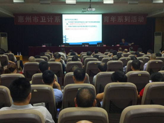 為深入開展“惠州市衛計系統法治宣傳教育活動年”工作,結合醫療服務市場秩序整頓年等工作和違法違規典型案件查處情況,解讀宣講相關法律知識,提高醫療機構及其醫務人員的依法執業意識,規范執業行為。9月20日,在博羅縣委黨校舉辦惠州市衛計系統法治宣傳教育年系列活動。活動由惠州市衛計局主辦,博羅縣衛計局協辦。參加人員有市衛生計生局分管領導,縣衛生計生局主要領導、分管領導,局規財、法監、疾控、醫政、婦幼、行政審批服務股負責人;縣衛生監督所所長、副所長、分所所長和相關股室負責人;縣直各醫院院長、分管副院長、醫務科主任;縣疾病預防控制中心主任、分管副主任;各鄉鎮衛生院(街道社區衛生服務中心)院長(主任)、分管副院長(副主任)、醫務科主任;羅陽、義和、龍溪各衛生站負責人;縣管各民營醫療機構負責人、醫務科負責人;羅陽(街道)各門診(診所)負責人等260人。活動講座由博羅縣衛計局副局長劉惠琪主持, 市衛計局黨組成員楊小敏作開班動員講話。