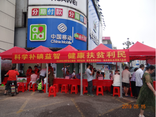 2019年5月15日是第26個“防治碘缺乏病日”,為落實黨中央和國務院領導同志對地方病防治工作的重要批示精神,推動實現《地方病防治專項三年攻堅行動方案(2018-2020年)》,我局于5月15日上午聯合博羅鹽務、縣疾控中心、石灣鎮打假辦、石灣鎮市場監督管理所和石灣鎮衛生院在石灣鎮中心市場開展以“科學補碘益智,健康扶貧利民”為主題的宣傳活動。