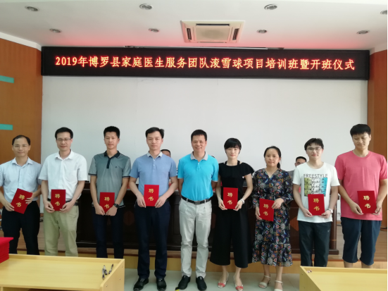 2019年6月20日上午09:00,2019年博羅縣家庭醫生服務團隊“滾雪球”培訓班開班儀式在縣衛生健康局四樓會議室舉行。博羅縣衛生健康局副局長崔愛民、李才明,醫政股負責人孫昆,培訓基地楊僑鎮衛生院和龍溪街道社區衛生服務中心班子成員和縣2019年家庭醫生服務團隊培訓講師團團長黃金珠出席了開班典禮,開班典禮由醫政股負責人孫昆主持,參加本次活動的還有博羅縣2019年家庭醫生服務團隊培訓講師團講師、博羅縣2018年家庭醫生服務團隊滾雪球培訓優秀學員代表和2019年博羅縣家庭醫生服務團隊“滾雪球”培訓班學員。