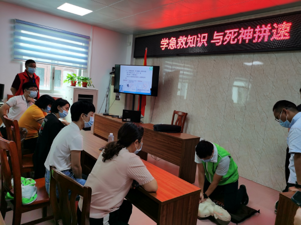 講座現場為廣大群眾普及急救知識及示范心肺復蘇操作,聽課的群眾現場實踐操作,學習掌握基本操作要領。