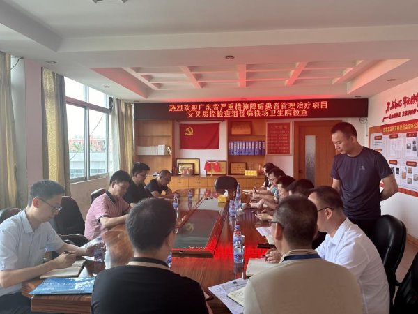 根據廣東省精神衛生中心工作部署,2024年6月24日至25日,省嚴重精神障礙患者管理治療項目交叉質控組到我縣慢性病防治站(縣精神衛生中心)、縣第六人民醫院、石灣鎮鐵場衛生院開展專項質控檢查。市精神衛生中心分管領導,縣衛生健康局主要領導、分管領導陪同檢查。