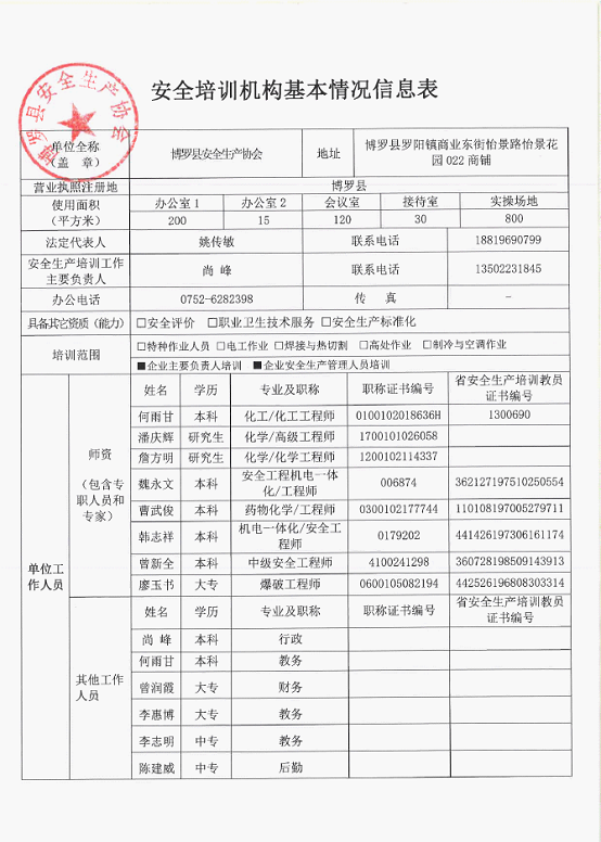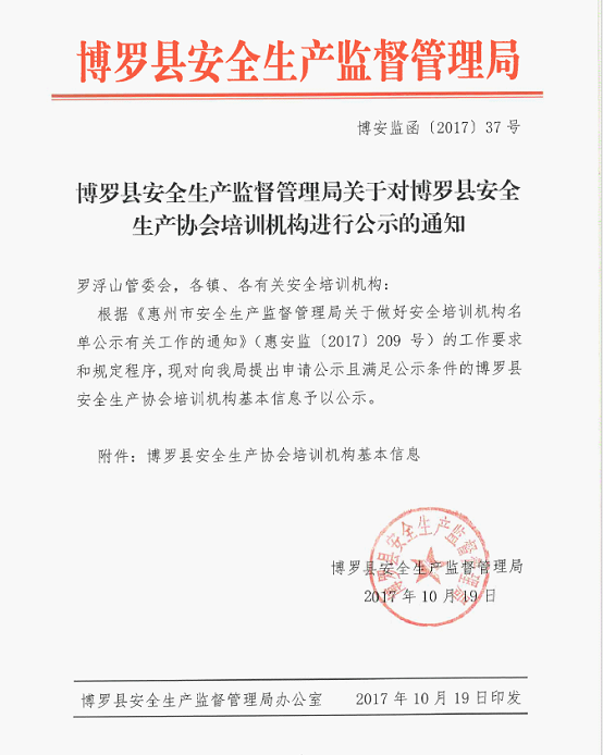 博羅縣安全生產監督管理局關于對博羅縣安全生產協會培訓機構進行公示的通知