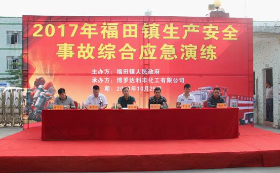按照《2017年博羅縣“安全生產應急能力提升年”活動實施方案》(博安〔2017〕2號)工作部署,福田鎮政府于10月25日下午在博羅達利豐化工有限公司開展2017年生產安全事故綜合應急演練。