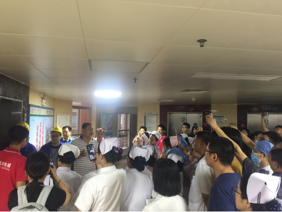 演練在上午9點30分正式開始,首先電梯維護單位對電梯相關(guān)知識進行講解及宣傳。隨后,在醫(yī)院3號電梯針對電梯經(jīng)常發(fā)生的幾種突發(fā)情況進行現(xiàn)場演習(xí)和對遭遇各種特殊情況的應(yīng)急程序以及處理方式方法進行詳細講解分析。