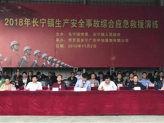 長寧鎮黨委副書記、鎮長賴高峰,黨委副書記,柯耀彬副鎮長張惠強,長寧鎮班子成員及長寧鎮安委會各成員單位負責人、各村(社區)干部、各企業主要負責人及安全管理人員、博羅縣長寧中旭服飾有限公司員工等共200多人觀摩了本次演練。