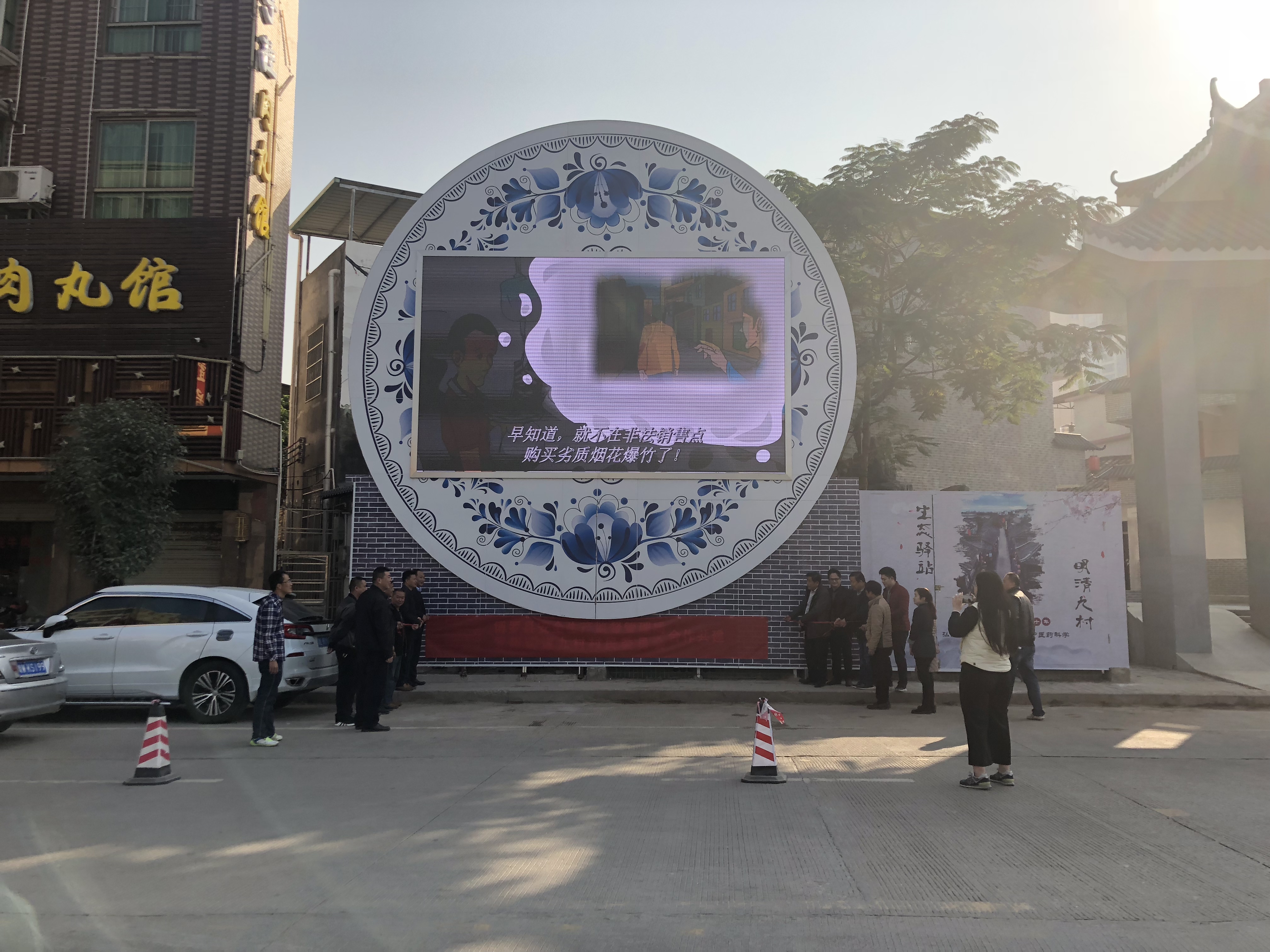 宣傳屏幕矗立在九村村委正在打造建設的“明清九村”項目牌坊旁邊。大屏幕采用青花瓷碟造型,發色青翠,釉質堅致潤潔,古樸典雅,美輪美奐,代表著九村莊重、喜慶、吉祥、熱烈進取的精神。屏幕通過運用現代化手段作為與村民溝通的橋梁,以圖片、視頻的靈活播放形式將安全生產宣傳畫面快捷優質地展現出來。宣傳屏幕既是我縣安全生產工作的宣傳陣地,又點綴了“明清九村”的景點,成為該區域一張靚麗的名片。