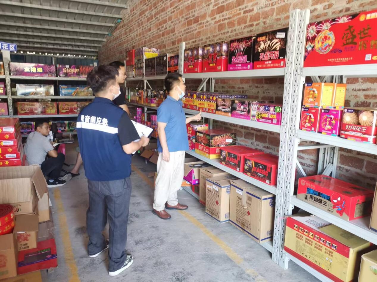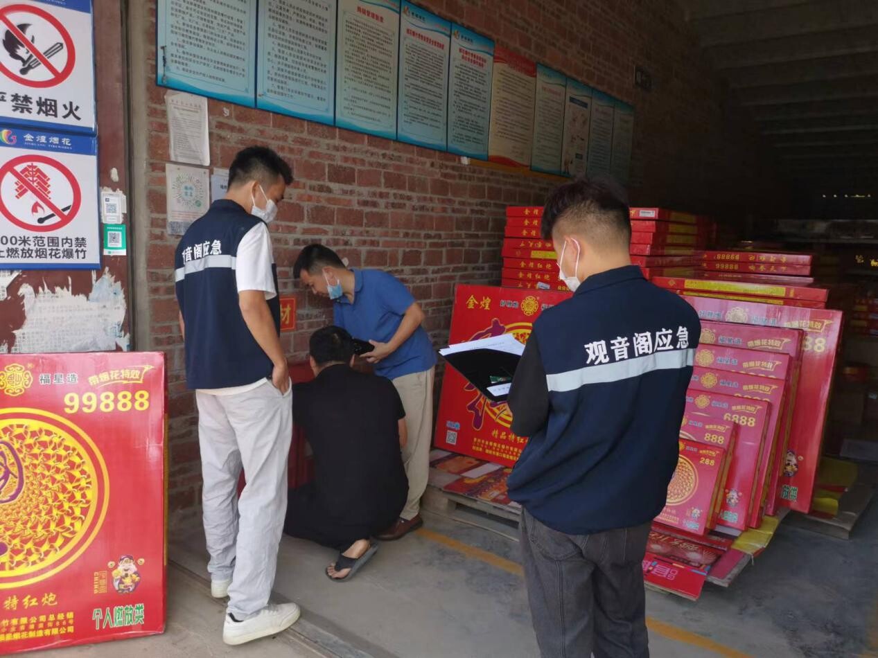 2022年9月28日,根據上級有關文件要求,我局危險化學品安全監管股執法人員會同觀音閣鎮應急辦工作人員對觀音閣鎮3家煙花爆竹零售店進行國慶、重陽節前煙花爆竹執法檢查,抽查煙花爆竹流向標識,流向均正常,現場要求零售店加強節前煙花爆竹儲存銷售安全管理。