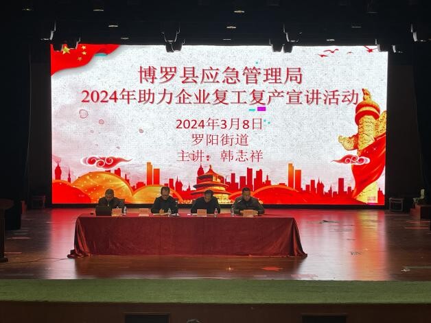 為進(jìn)一步提高企業(yè)人員安全生產(chǎn)意識,壓實(shí)企業(yè)安全生產(chǎn)主體責(zé)任,全面做好企業(yè)安全生產(chǎn)復(fù)工復(fù)產(chǎn)工作,2024年3月8日上午,縣應(yīng)急管理局前往羅陽街道開展助力企業(yè)復(fù)工復(fù)產(chǎn)安全生產(chǎn)工作宣傳教育培訓(xùn)會。