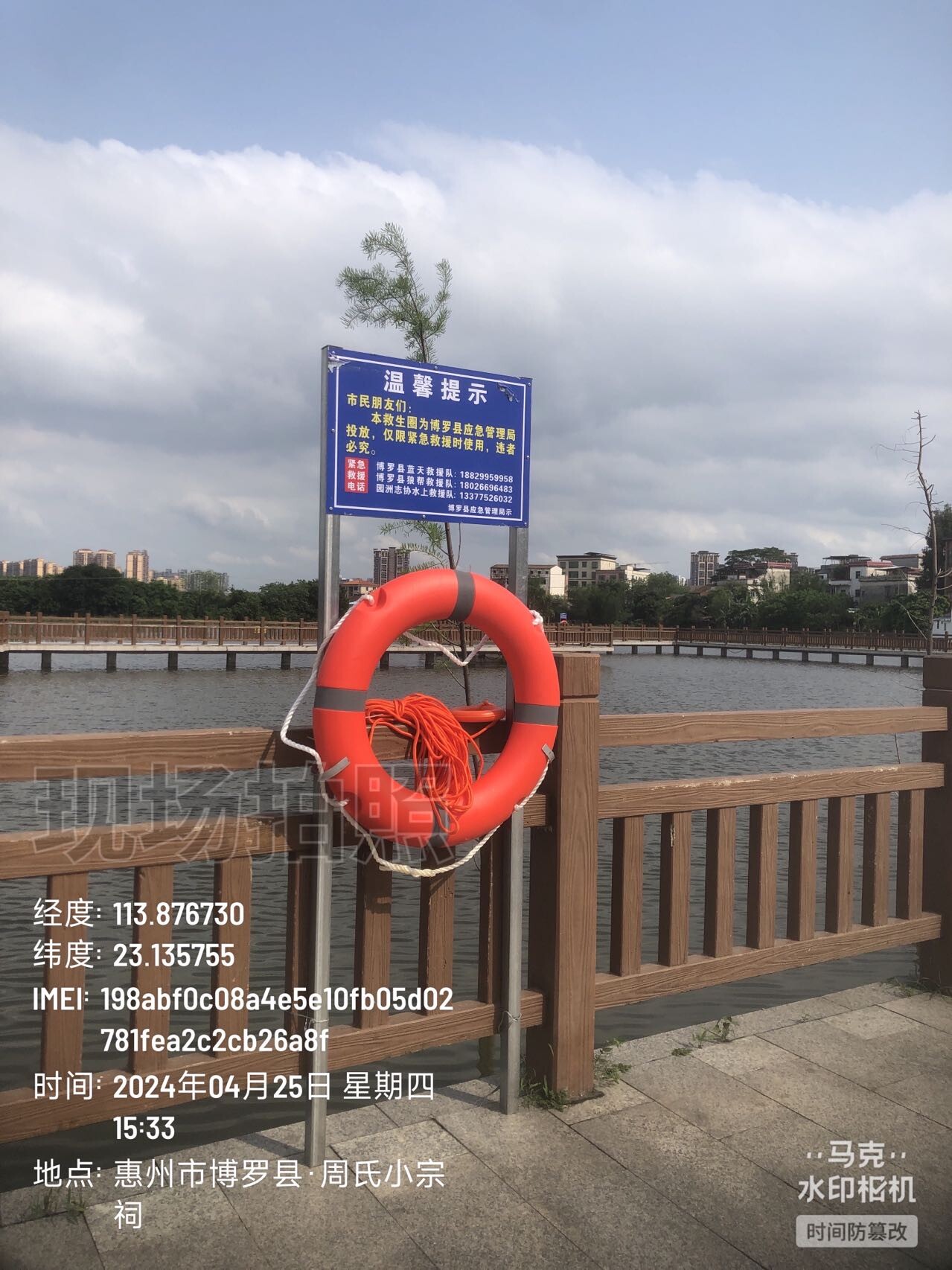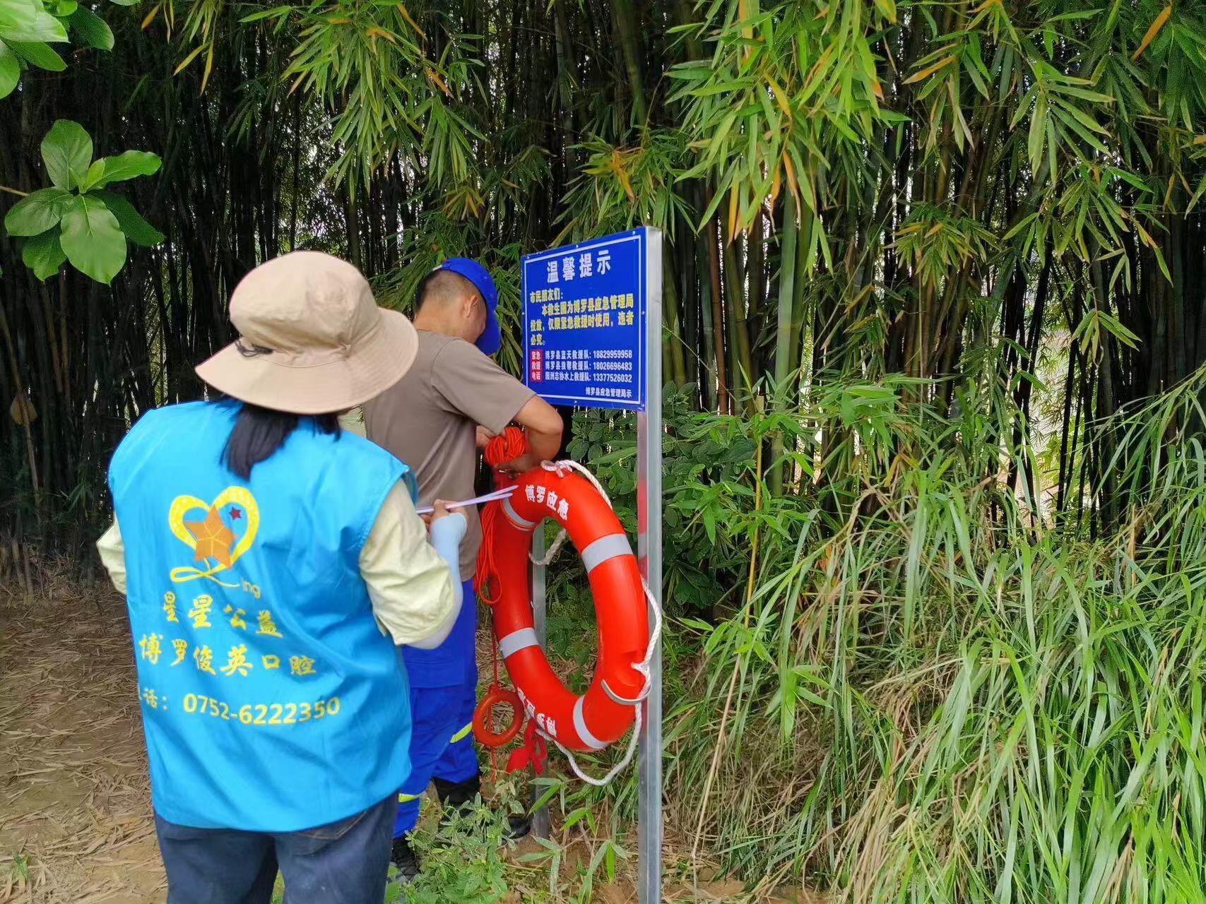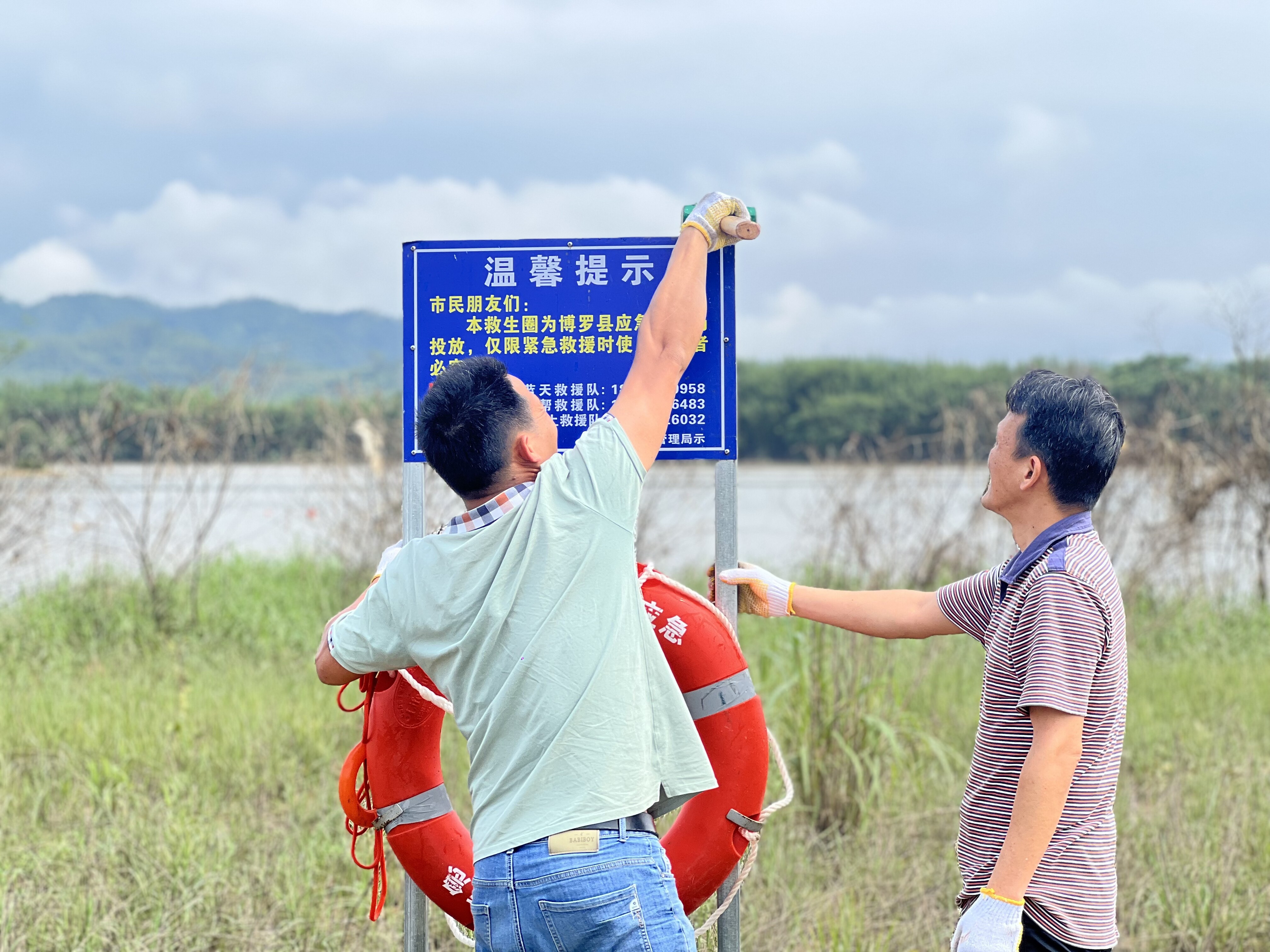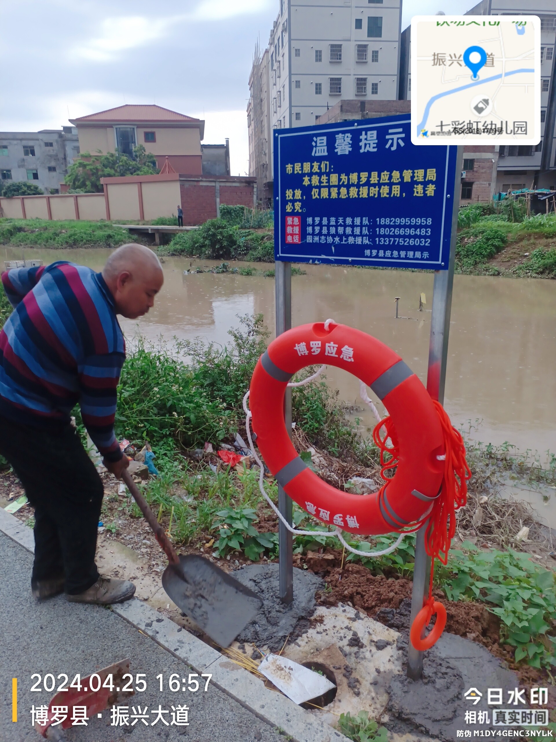 博羅縣應急管理局配置給18個鎮(街)與3支公益救援隊于江河湖庫沿岸區域內總共投放安裝1000套救生圈等救援器材,支架警示牌上掛救生圈和救生繩,上面標示著社會公益救援緊急電話。安全工作無小事,一旦發生溺水事故,保證安全情況下展開營救,保障落水者和救援者的生命安全。架起生命守護網。