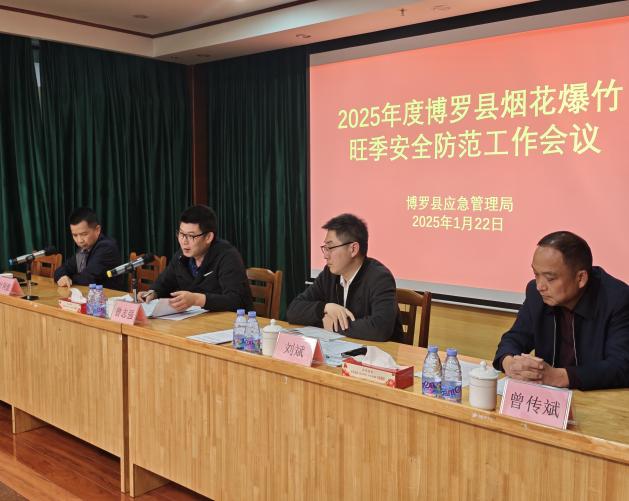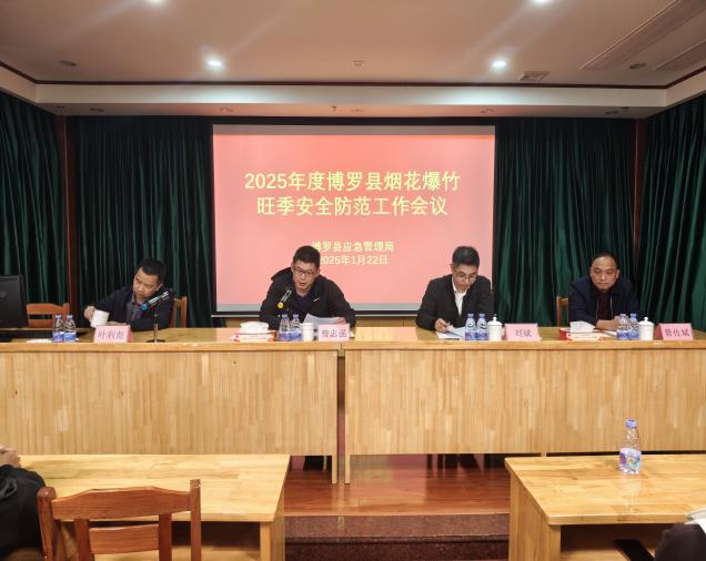 2025年1月22日,為全面貫徹落實習近平總書記關于安全生產重要論述和重 要指示批示精神,按照《惠州市安全生產委員會辦公室轉發〈國 務院安委會辦公室關于加強煙花爆竹旺季安全生產工作的通知〉 的通知》(惠安辦函〔2024〕56號)和《博羅縣應急管理局關 于開展危險化學品行業年終歲尾安全風險隱患大排查大整治行 動的通知》(博應急〔2024〕86號)文件精神和要求,我局曾志強副局長組織召開2025年度全縣煙花爆竹旺季安全防范工作會議。會議傳達學習了省、市安委會辦公室關于加強煙花爆竹旺季安全生產工作的文件精神,通報了近期各地查處煙花爆竹非法生產、儲存、運輸等典型案例,并對全縣煙花爆竹旺季經營安全監管工作進行了再部署。會上曾志強副局長在講話中強調,煙花爆竹銷售進入旺季,安全防范壓力不斷增大,要迅速行動起來,各鄉鎮(街道)要加強宣教引導,營造共治格局。要注意引導群眾到合法正規的銷售網點購買煙花爆竹,自覺遵守安全燃放規定。危化股全體工作人員、煙花爆竹零售店主要負責人和煙花爆竹(批發)企業主要負責人共計80余人參加了此次會議。