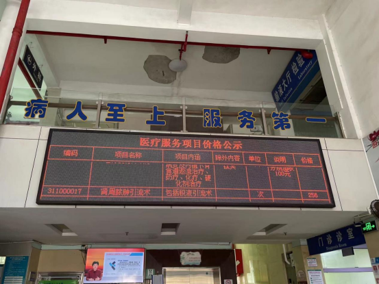 從檢查情況來看,長寧鎮中心衛生院利用門診大廳電子滾動屏不間斷地播放通知,公示新的醫療服務項目價格或布置展板,公示價格。同時專家組在檢查中發現長寧鎮中心衛生院未在住院部設立醫療服務項目價格公示牌,現場進行了指導和糾正。