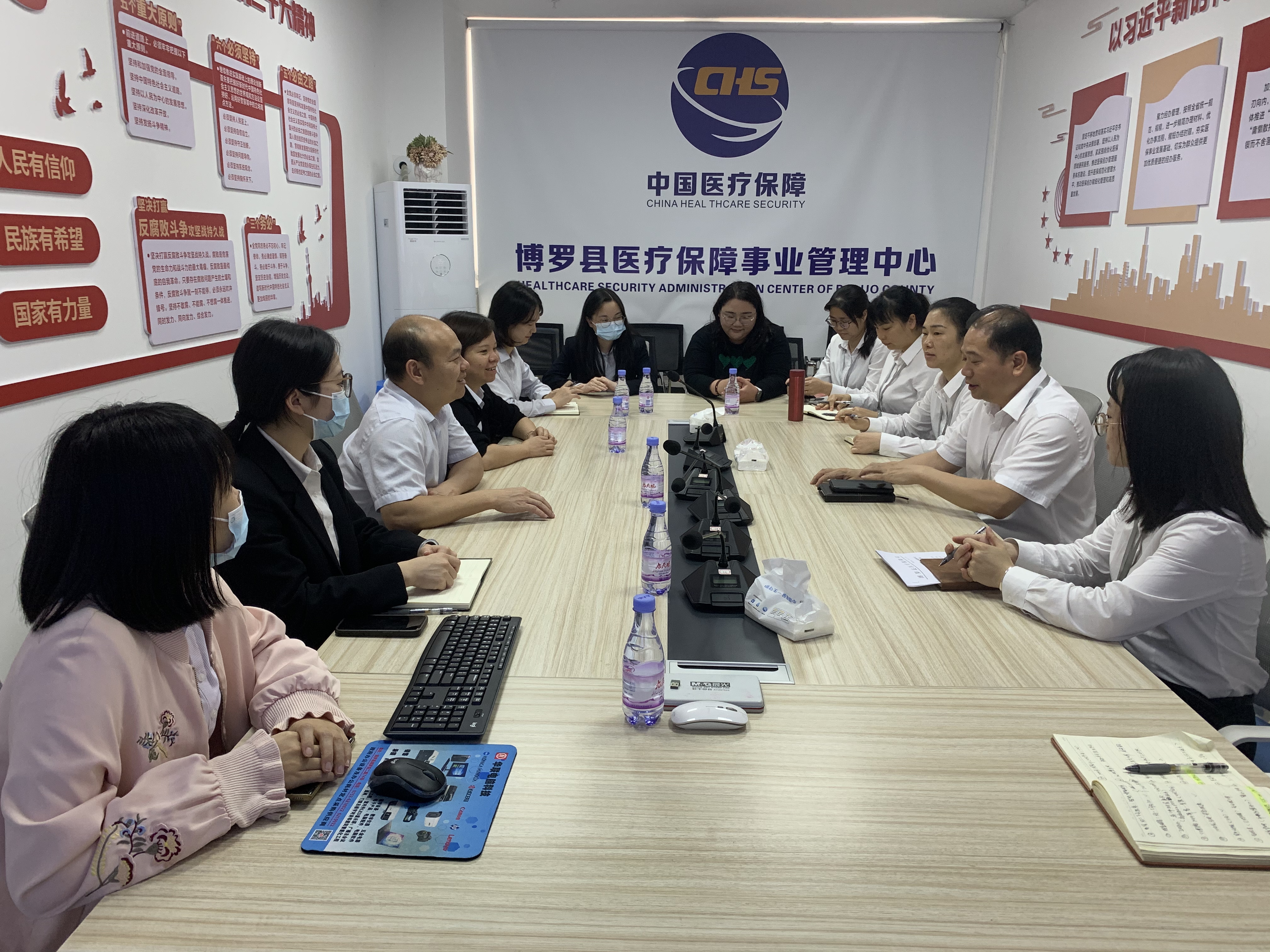 交流會上,惠陽區醫保中心、博羅縣醫保中心重點圍繞醫保經辦內控管理、醫保結算、定點機構協議管理、醫保信息化標準化建設和醫保便民服務站建設等方面進行交流學習,并查閱了相關資料。