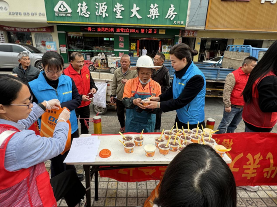 縣醫保局志愿者現場為戶外勞動者端上現煮八寶粥,并派發醫保政策宣傳資料,通過現場講解2025年城鄉居民醫療參保繳費流程和政策,進行醫保政策宣傳。