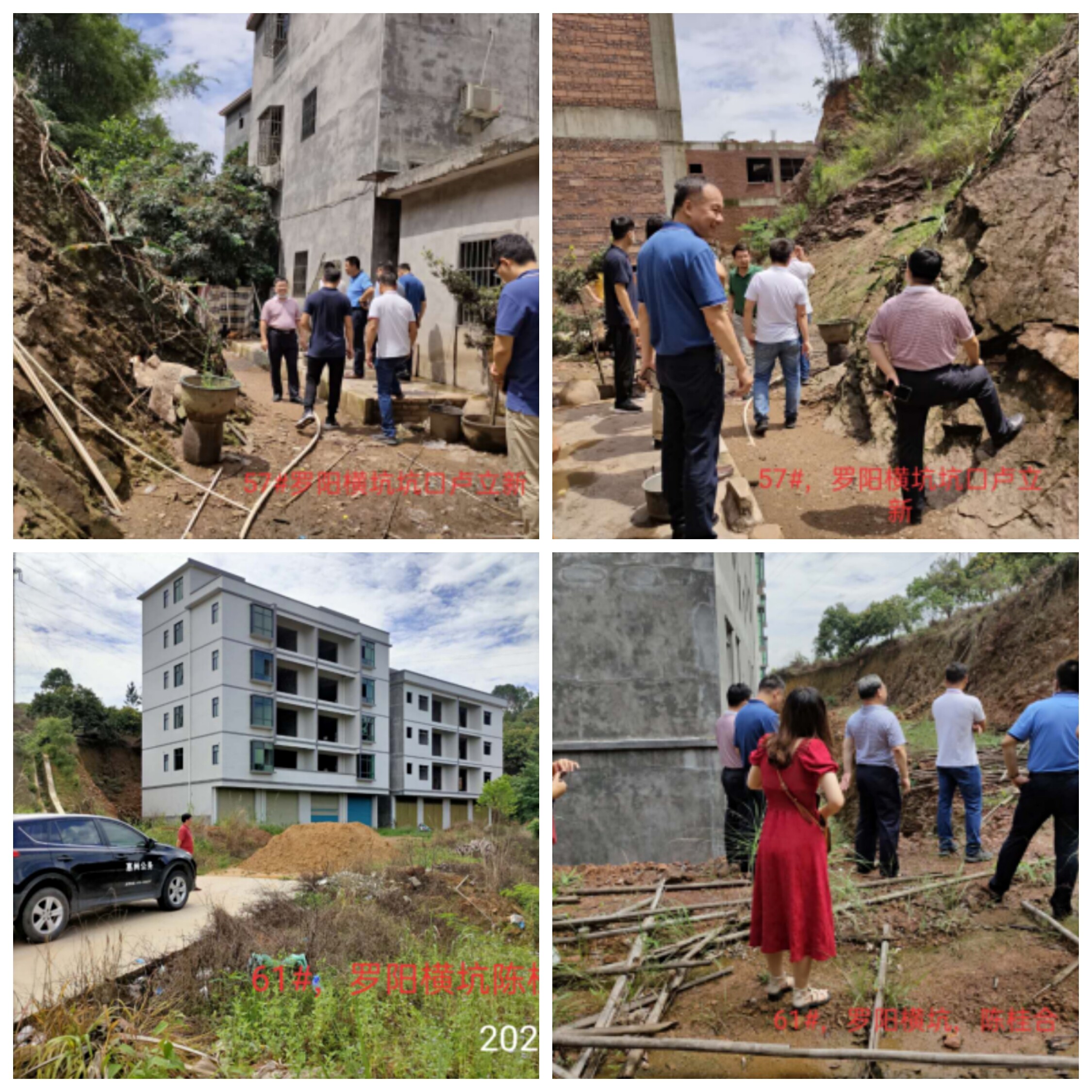 為有效推進農村削坡建設風險點排查整治工作進展,貫徹落實上級有關農村削坡建房工作部署,確保按時保質完成目標任務,2020年6月3日市住建局城鄉建設管理科科長李建軍同志協同廣東省建筑科學研究院高級工程師林小兵等5位專家、縣住建局總工程師陳錦容同志及相關工作人員前往我縣羅陽街道橫坑村兩處農村削坡建房風險點進行實地考察。