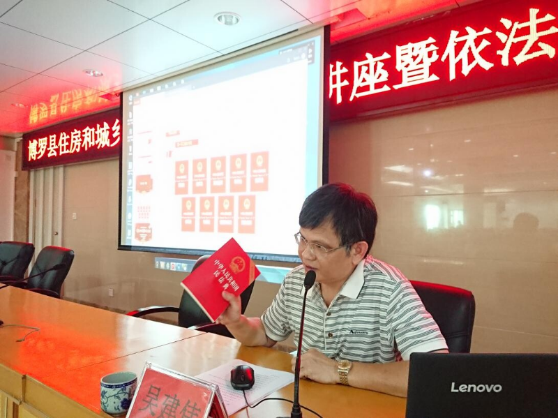 《民法典》是新中國第一部法典,凝聚著中國人民的共同意志和民族精神,是推進中華民族偉大復興的權利保障書和私權保障的宣言書。為更好地宣傳和貫徹落實《中華人民共和國民法典》,推動我局干部職工學習民法典,落實國家機關民法典宣傳“誰執法誰普法”的普法責任,提高我局干部職工的法治素養,切實抓好學法用法工作。2020年7月28日,博羅縣住建局舉辦民法典專題講座暨依法行政培訓班,博羅縣住建局黨組書記、局長主持開班儀式,邀請廣東省律師行業民法典宣講團成員、局顧問律師吳建偉同志為全體干部職工授課。