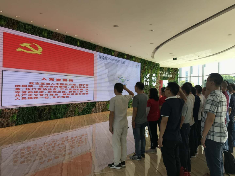 上午10點全體黨員參觀了潼湖科技小鎮產業發展中心、智慧控制中心、3D體驗館、智慧生活館等,了解小鎮的發展規劃及配套設施、零距離體驗小鎮的智慧化建設,并在產業發展中心舉行了重溫入黨誓詞儀式。