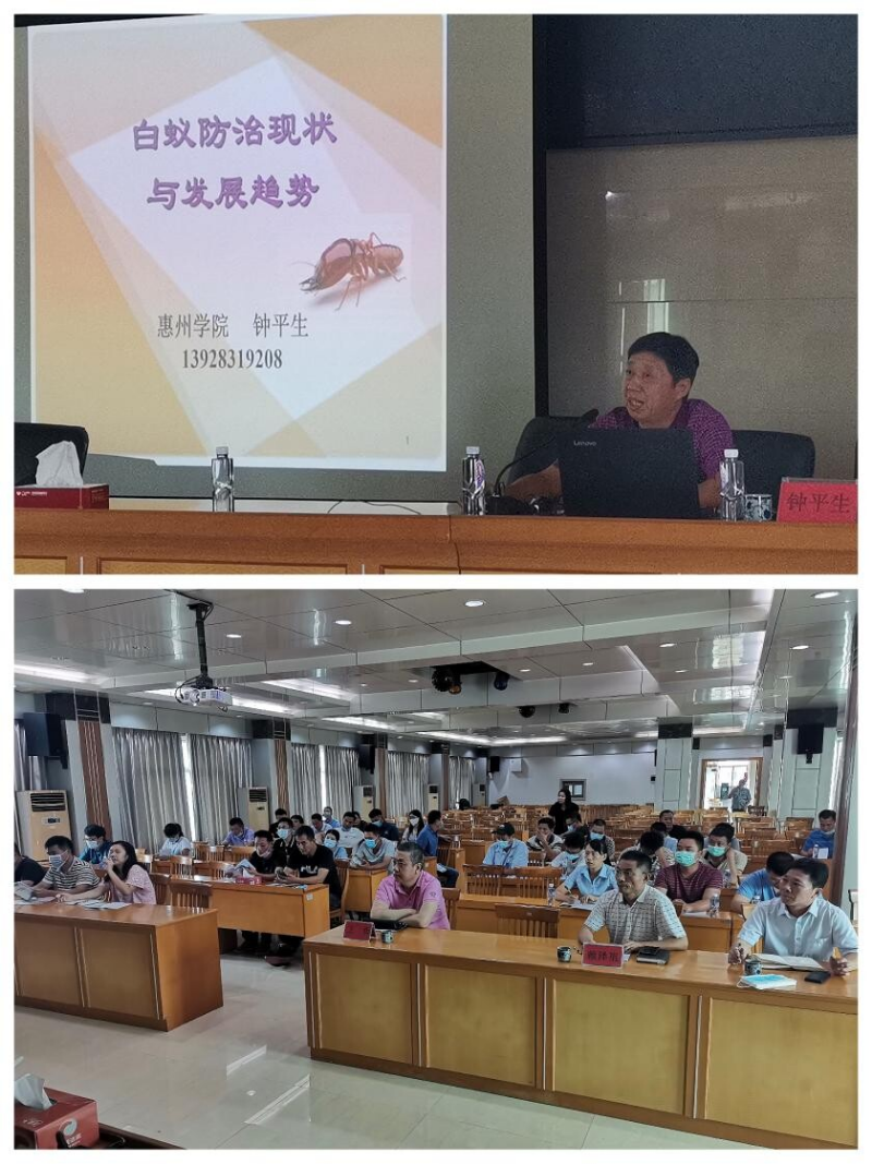 下午,惠州學院生命系鐘平生教授為我們講解《白蟻防治現狀和發展趨勢》,為我們科普了房屋白蟻防治專業知識。鐘平生教授是惠州學院生命科學學院教授、博士,惠州市拔尖人才,他長期從事農業昆蟲、入侵有害生物綜合治理教學與科研工作,是中國白蟻學會、廣東省昆蟲學會、廣東省動物學會會員、惠州市食品專家委員會副主任委員。培訓班上,學員們為鐘教授的精彩講解不時鼓掌,現場互動環節也是踴躍參與。