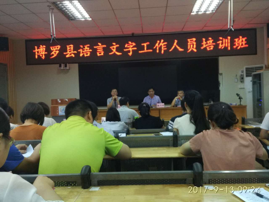 2017年9月13-14日,博羅縣語言文字工作人員培訓班在博羅縣教師進修學校舉辦??h住建局指派一名人員參加了培訓。培訓主要內容為:普通話等級測試培訓;《廣東省三類城市語言文字工作評估標準(試行)》解讀;公文寫作規范培訓。