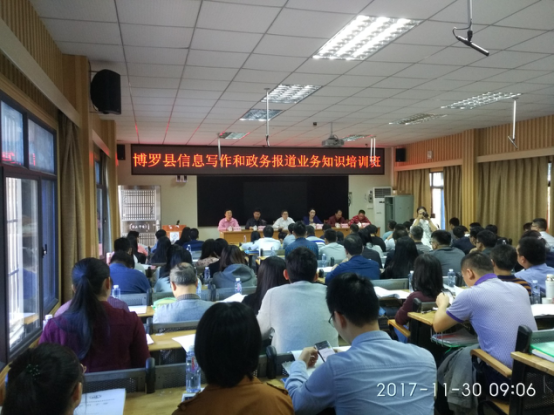 2017年11月30日至12月1日,博羅縣信息寫作和政務報道業務知識培訓班在博羅縣教師進修學校舉辦。我局和縣直其他單位以及各鎮負責信息寫作的人員約110多人參加了培訓。