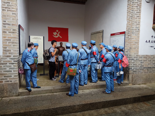 高潭是東江地區革命斗爭的發源地之一,也是全國最早一批蘇維埃政權的誕生地。踏上這片紅色土地,大家懷著對革命先烈的無限崇敬之情,先后參觀了高潭革命歷史紀念堂、馬克思街、列寧街、高潭革命歷史陳列館,瞻仰中洞改編雕塑,參觀中共東江特委印刷廠舊址湖山書舍,中共東江特委舊址百慶樓和革命舊址紅軍磨坊、紅軍井,一起回顧高潭革命歷史,一起接受黨的革命傳統教育。