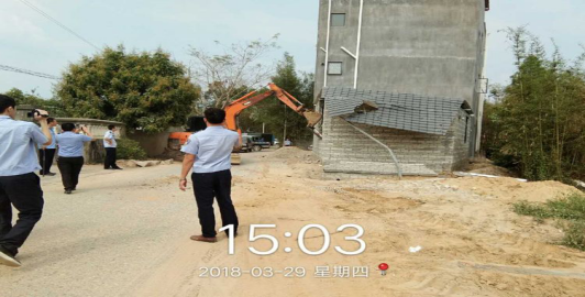 為深入開展打擊"兩違"工作,3月29日,巷口村雷公浪小組、翠美園第五小組突擊搭建的圍墻和占用村道的鐵皮房被依法拆除。