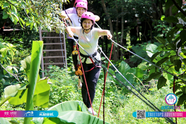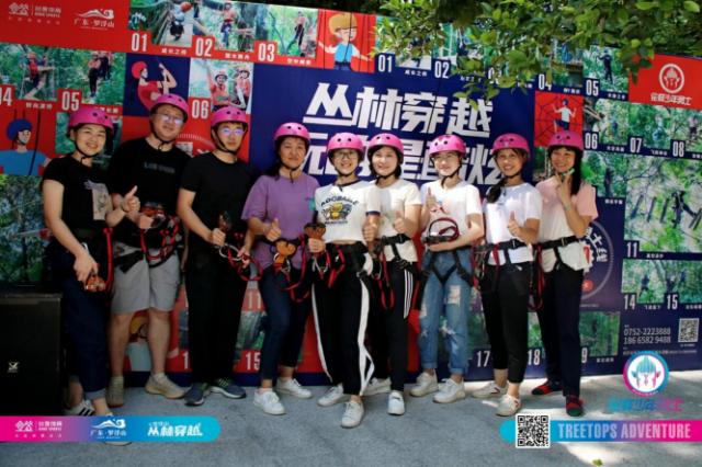 第二天,活動小組體驗了羅浮山叢林穿越項目,項目包含極限飛網、高空漫步、飛躍峽谷等19個關卡,組員們認真配合,互相鼓勵,相互扶持,在重重難關前,突破自我,成功挑戰所有關卡,從一個個挑戰中感受運動的快樂,感受團隊協作的重要。