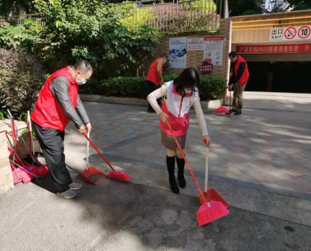 活動中,志愿者們被分成兩組,分區域對小區進行環境衛生清潔。志愿者們帶著掃把、火鉗等工具對小區街道、居民房前屋后等各個角落進行打掃,全面清掃衛生死角30多處,清理牛皮廯35平方米,清理各類蚊蟲孳生場所6處。同時,勸導小區居民做好“門前三包”工作,引導居民做到垃圾不落地、不亂吐痰、隨手拾撿垃圾進垃圾桶等,確保整體環境衛生干凈整潔。