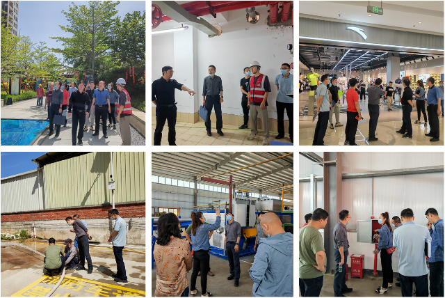 隨后,活動進入現場實地察看環節。根據行程計劃安排,消防審查驗收組先后對藍山頤景園1~3號樓,5~7號樓建設工程,天虹商場安踏體育用品店內部裝修工程,龍華鎮惠州市威鴻偉基實業有限公司廠房一廠房二建設工程進行實地察看。市住建局領導、消防行業協會專家在項目現場按照消防驗收工作流程進行了實操演示講解,對項目的安全疏散、消防車道、防火分區與構造等建筑防火進行核查,同時對項目的消火栓系統、泵房、火災自動報警系統及消控室等進行檢查測試。
