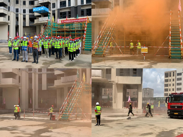 活動現場模擬了施工現場發生火災,一工人撤離時不慎墜落的事故場景。事故發生后,警戒疏散組、現場搶險組、醫療救護組、后勤保障組、信息聯絡組等各支應急隊伍迅速聯動,從事故發現上報、預案啟動、安全疏散、現場救援、輿情處置等多個環節緊密而有序地開展。