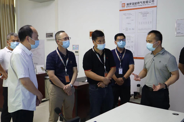 督查組首先聽取了博羅深能燃氣有限公司近年來發展取得的成果等工作情況匯報。隨后到監控中心觀看了燃氣管網GIS平臺監控系統的關閥分析、巡檢執法記錄實時狀況等操作和演示,并詳細詢問了氣源保供、用氣價格、場站建設、燃氣管網第三方施工現場保護情況及場站反恐等工作落實情況。