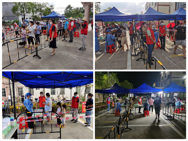10月6日下午,在機關黨委專職副書記歐小芳的帶領下,黨員志愿者按要求全部提前到達新村村核酸檢測點支援核酸檢測工作。黨員志愿者按照責任分工迅速進入工作狀態,有序組織居民進入檢測點,幫助老人登記個人資料生成“粵核酸”碼,協助做好信息錄入、排隊引導、維持秩序、做醫護人員小助手等工作。黨員志愿者們在抗疫一線,有條不紊地開展工作,連續3天,每天從下午4點工作至晚上10點。