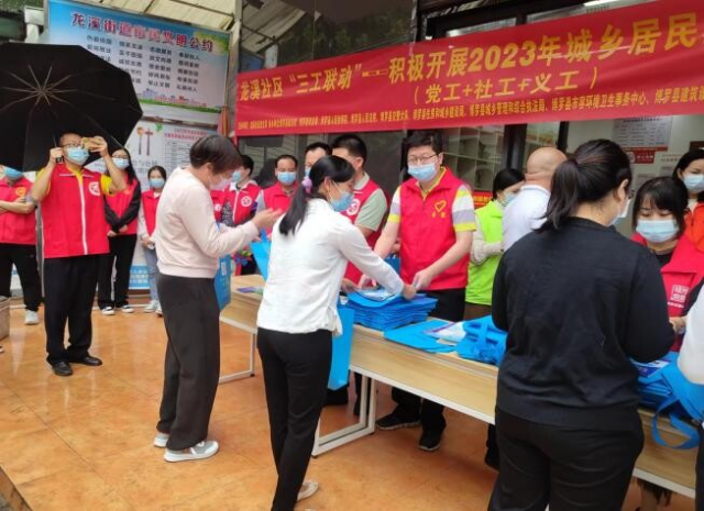 為全面做好2023年城鄉(xiāng)居民醫(yī)療保險(xiǎn)繳費(fèi)工作,提高居民群眾參保的積極性和惠民政策的知曉率,2022年11月25日上午,博羅縣住建局第一、二、三黨支部黨員代表下沉龍溪社區(qū)黨群服務(wù)站,聯(lián)合博羅縣市容環(huán)境衛(wèi)生事務(wù)中心、博羅縣建筑設(shè)計(jì)院、龍溪社區(qū)黨支部、龍溪惠民社工、博學(xué)公益龍溪組,開(kāi)展2023年城鄉(xiāng)居民醫(yī)療保險(xiǎn)政策宣傳志愿服務(wù)活動(dòng)。
