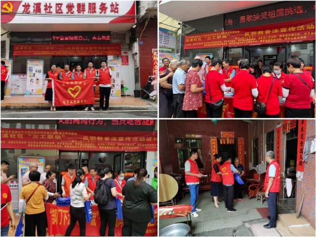 為進一步扎實推進反邪教宣傳教育工作,引導廣大群眾掌握反邪教知識,增強防范、識別、抵制邪教侵蝕的意識和能力,倡導崇尚科學、健康文明、積極向上的社會氛圍,2023年6月20日上午,博羅縣住建局第一、二、三黨支部黨員代表下沉龍溪社區黨群服務站,聯合博羅縣委政法委、博羅縣司法局、博羅縣市容環境衛生事務中心、龍溪社區黨支部、博學公益龍溪組等8個部門,開展反邪教普法宣傳進社區活動。