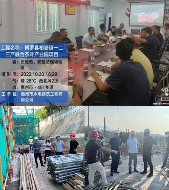 為貫徹落實省住建廳《全省住房城鄉建設領域重點行業安全生產大檢查方案》文件精神,2023年10月30日下午,博羅縣住建局建設工程質量部和施工安全部組成聯合檢查組對博羅縣柏塘鎮一二三產融合茶葉產業園項目開展聯合檢查。