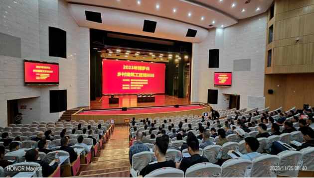 為提升農村建筑工匠隊伍知識水平和建設技術,保障農村房屋施工質量和安全,全面落實“百千萬工程”農房質量安全風貌提升以及鄉村振興工作的安排部署,2023年11月25—26日,縣住建局在博羅縣文化中心影劇院二樓會議室舉辦2023年博羅縣鄉村建筑工匠培訓班,縣住建局黨組副書記、副局長彭兆洪,縣住建局總工程師雷林輝,惠州市建筑業協會、授課專家以及200多名建筑工匠參加本次培訓班。