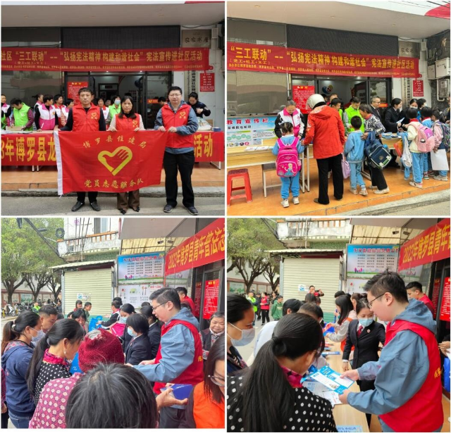 為深入學(xué)習(xí)宣傳憲法,樹立憲法意識,弘揚憲法精神,結(jié)合開展學(xué)習(xí)貫徹習(xí)近平新時代中國特色社會主義思想主題教育,2023年12月1日上午,由博羅縣司法局牽頭,博羅縣住建局、博羅縣法院、博羅縣委政法委、博羅縣檢察院、博羅縣市容環(huán)境衛(wèi)生事務(wù)中心、博羅縣城鄉(xiāng)管理和綜合執(zhí)法局等9個部門下沉龍溪社區(qū)黨群服務(wù)站,聯(lián)合龍溪社區(qū)黨支部、博學(xué)公益龍溪組,開展“弘揚憲法精神