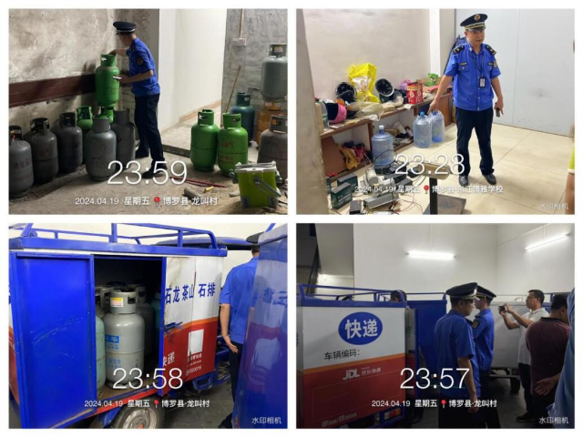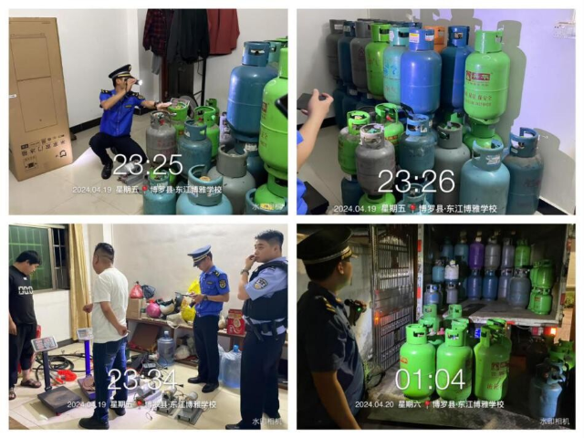 為繼續深入貫徹落實省市縣關于燃氣安全專項治理工作部署,結合3月28日、4月7日和4月13日聯合打擊“黑氣”專項行動成果,乘勝追擊,2024年4月19日晚上,博羅縣住建局繼續組織縣綜合執法局、園洲鎮政府、園洲鎮派出所組成聯合執法隊伍,開展打擊“黑氣黑瓶”專項聯合行動。