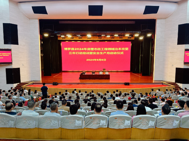 為深入貫徹習(xí)近平總書記關(guān)于安全生產(chǎn)重要論述和重要批示指示精神,落實今年國務(wù)院、省市安委會和省市住建局關(guān)于房屋市政工程安全生產(chǎn)工作部署和要求,做好安全生產(chǎn)月各項工作,全力推進(jìn)博羅縣房屋市政工程領(lǐng)域安全生產(chǎn)治本攻堅三年行動,2024年6月6日,博羅縣住建局黨組成員、副局長張旭明在縣文化中心召開2024年房屋市政工程領(lǐng)域治本攻堅三年行動培訓(xùn)暨安全生產(chǎn)月系列活動啟動儀式,局質(zhì)安股、施工安全部全體人員及縣在建工程項目經(jīng)理、資料員、總監(jiān)約600人參加會議。