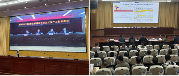 會議首先收聽收看2025年惠州市工程建設領域春節后復工復產安全工作部署會。傳達了《關于切實加強全市住建領域春節后復工復產和全國兩會時期安全防范工作的通知》要求,要堅持統籌發展和安全理念,安全是基礎和前提,安全要放在第一位,各部門、企業要參考《惠州市房屋市政工程企業雙重預防機制建設實施指南(試行)》《廣東省住房和城鄉建設廳關于加強房屋市政工程施工安全風險分級管控和隱患排查治理工作的通知》,建立健全安全風險分級管控和隱患排查工作制度,構建“雙重預防機制”。