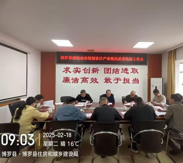 為全面落實“鏈長制”工作部署,結合我縣建筑業和規劃設計產業鏈高質量發展三年行動計劃,督促各部門加快推進產業鏈工作,2025年2月18日,博羅縣住建局黨組成員、副局長鄒梅清在局北門路辦公區A棟三樓會議室召開推進博羅縣建筑業和規劃設計產業鏈高質量發展工作會,局建管股、城鄉股、市政股、住房保障部、節能中心、檢測中心及供排水中心部門負責人和業務骨干參加會議。