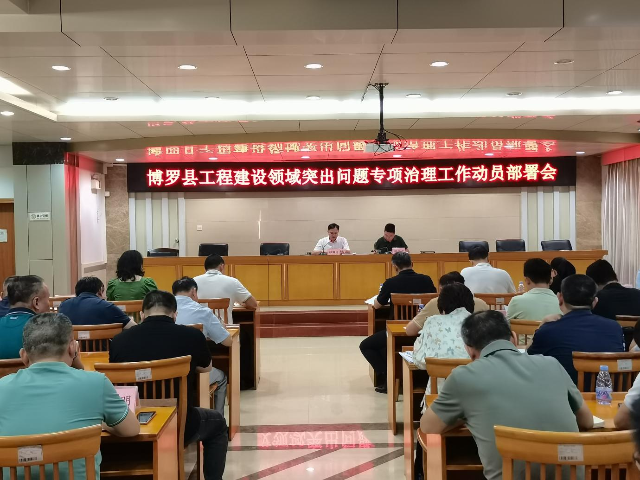 為加強工程項目監管,精準發力推動工程建設領域以案促改促治,深入查擺制度和監管漏洞,2025年8月26日下午3時,博羅縣住建局在局西北路辦公區八樓會議室召開博羅縣工程建設領域突出問題專項治理工作動員部署會,縣紀委監委第二派駐紀檢監察組組長魏志開,縣住建局副股長以上領導干部,縣發展改革局、縣財政局、縣自然資源局、縣交通運輸局、縣水利局、縣城鄉管理和綜合執法局、縣代建項目事務中心、縣市政園林事務中心、縣國有資產事務中心、市公共資源交易中心博羅分中心等相關單位分管領導及業務部門負責人參加會議。